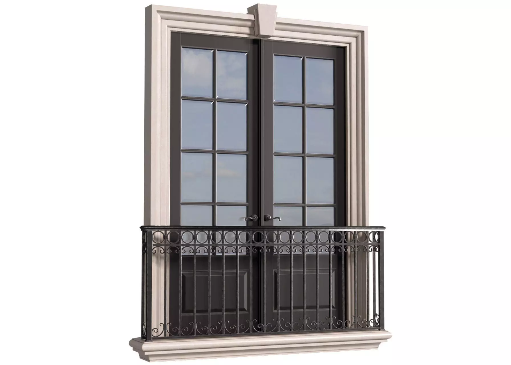 Classic exterior window with wrought iron railing (balcony)Facade decor for the exterior in a classic styleEntrance door to the house.Classic Porch,Windows ideas,French Doors,Door Interior Classic,White Door facade Classic,white double door,outdoor doors,classic Exterior Door,street doors,windows design,window security bars,windows for home,architectural moldings,front door for a private house,Traditional Interior Arched Opening,