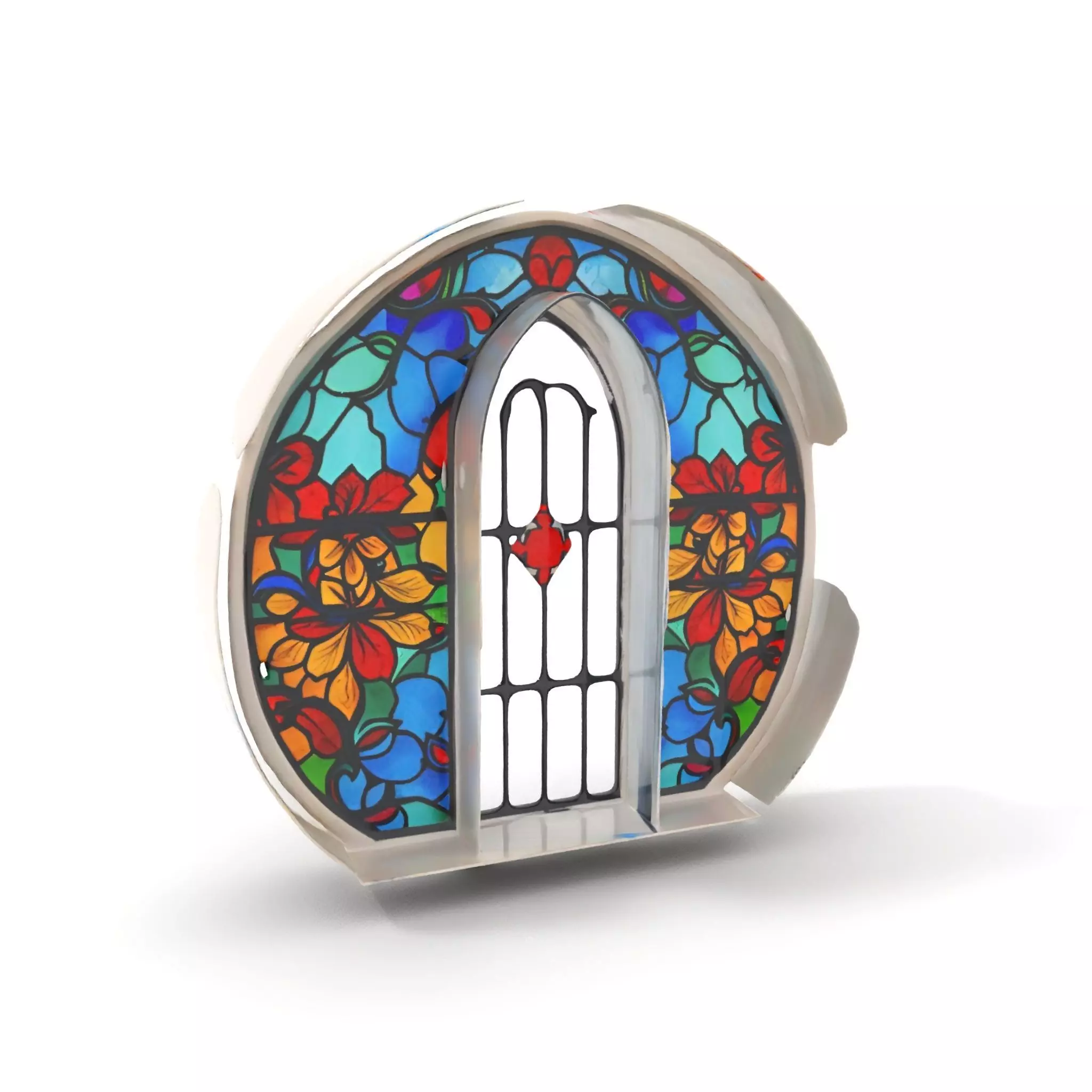 This vibrant stained glass model combines an intricate floral design with radiant colors. Perfect for architectural visualization, historical reconstructions, and artistic projects, this model enhances any scene with its elegant craftsmanship.