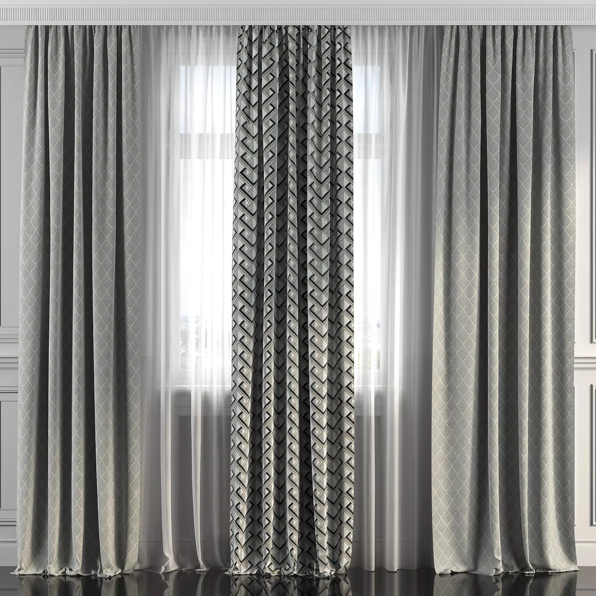 3D model of curtains and window. Curtains are suitable for any interior design of houses, apartments, bedrooms and living rooms.