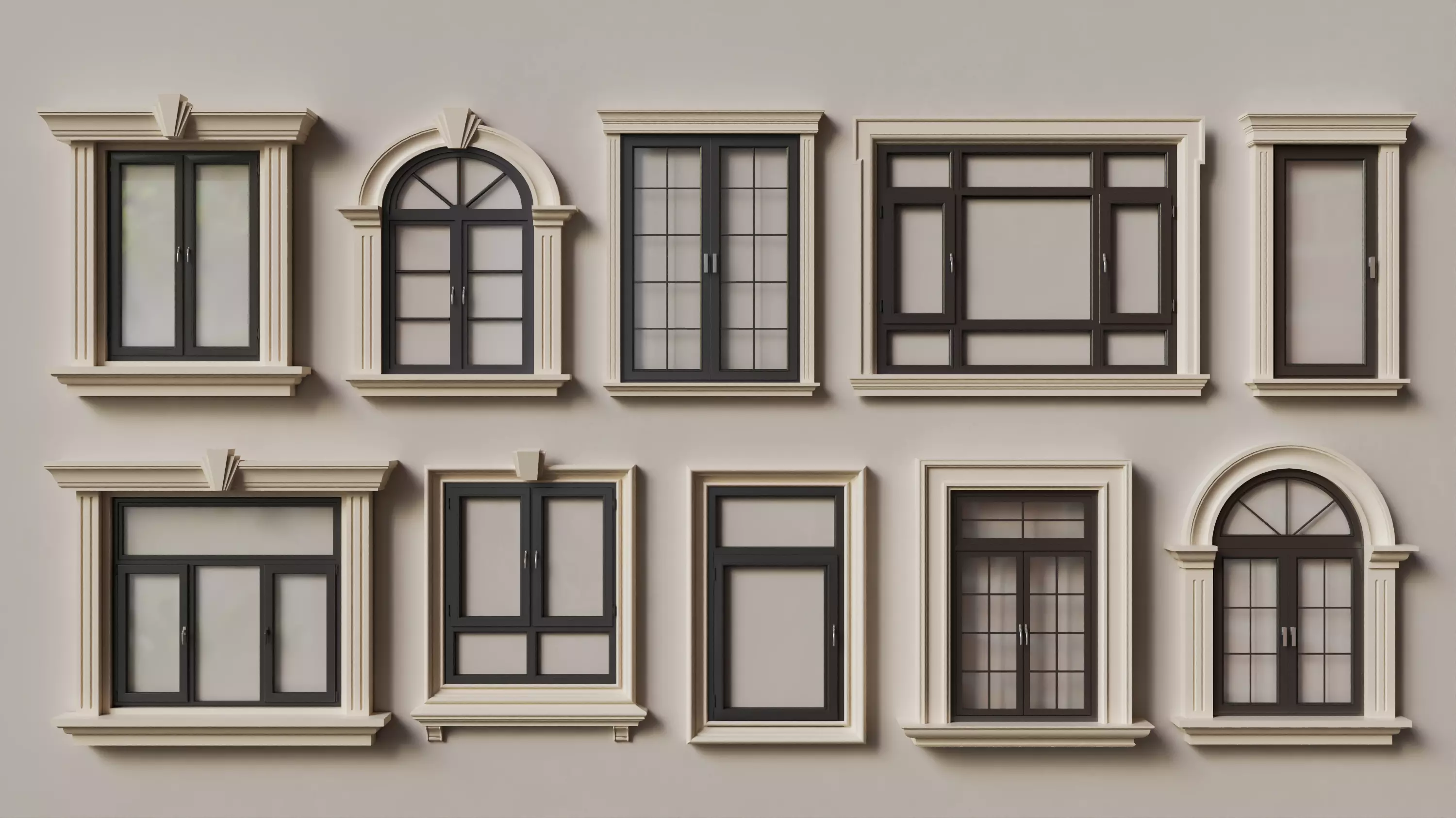 A premium collection of 10 high-quality European/French classical window models. Each window features exquisite stone/plaster moldings, perfect for high-end luxury villas, classical architectural restoration, ArchViz, and game environment design.Key Features:Professional Modeling: Precisely modeled in 3ds Max with clean and optimized topology.Photorealistic Rendering: V-Ray materials are pre-configured, ready to render out of the box.Cross-Platform Compatibility: Includes .FBX and .OBJ formats, ensuring seamless integration with Maya, Blender, Unreal Engine, and Unity.Modular Design: Window frames and decorative moldings are separated for easy customization.Technical Specifications:Software: 3ds Max (V-Ray Materials included)Export Formats: FBX (.fbx) and OBJ (.obj)Package Content: 10 individual window setsUVs: Base UV unwrapping completed