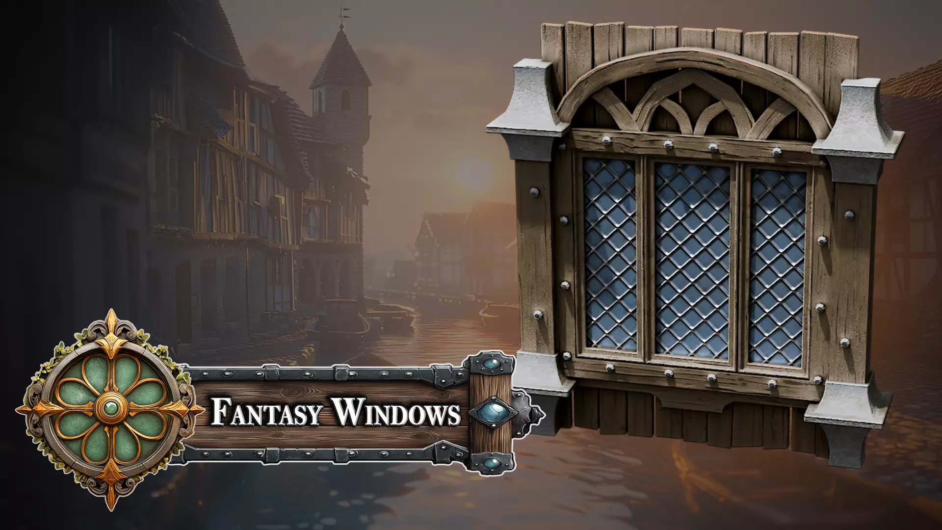 Key Highlights of the 'Fantasy Medieval Stylized Window - Arched Stone and Wood Frame':