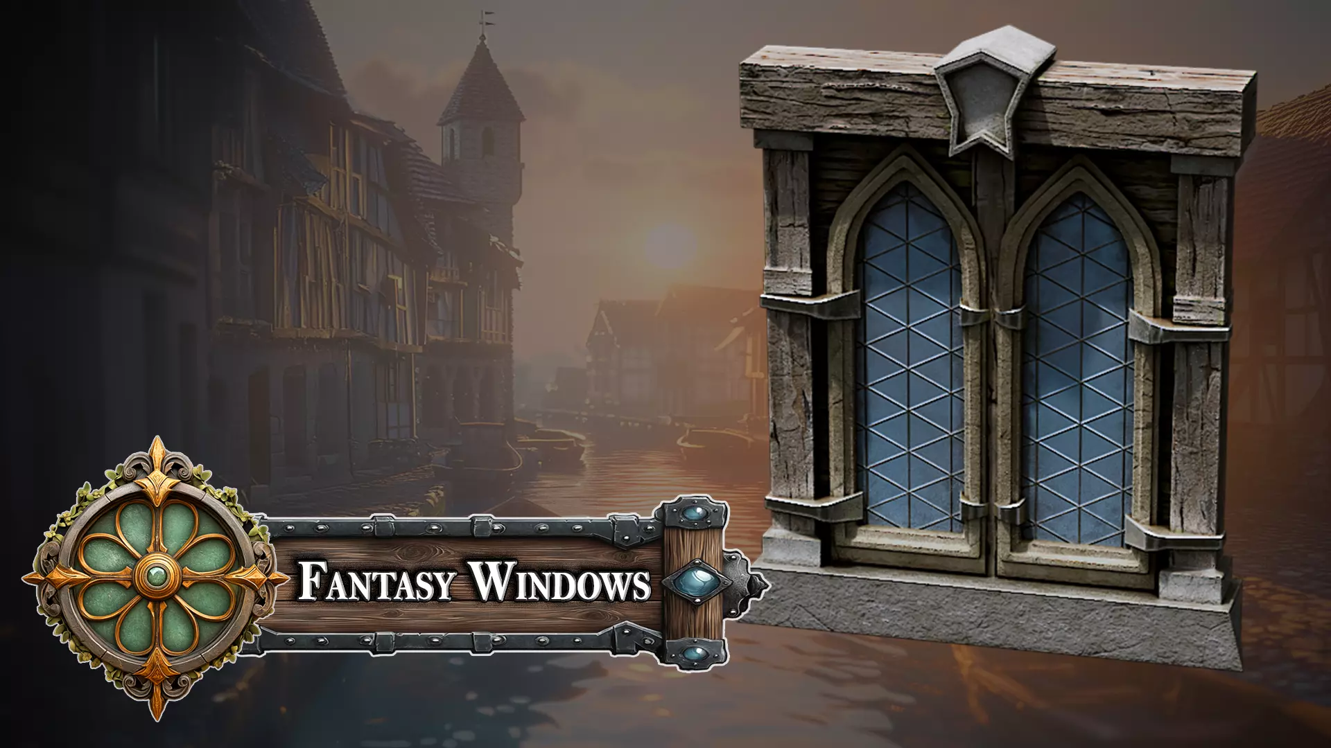 Step into the charm of medieval architecture with the 'Fantasy Medieval Stylized Window - Dual Arched Wooden Frame with Stone Accents'. This expertly crafted 3D asset is designed to elevate your fantasy and medieval-themed projects, adding a touch of stylized elegance to your scenes.