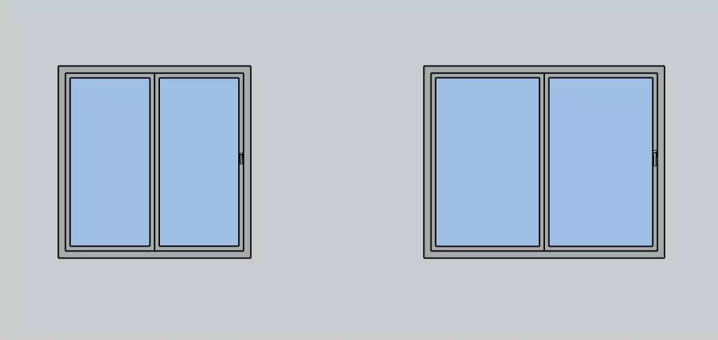 A clean, modern sliding window model designed for architectural visualization and interior/exterior scenes.The model features a minimal rectangular frame, two panels (one fixed, one sliding), and realistic real-world proportions.