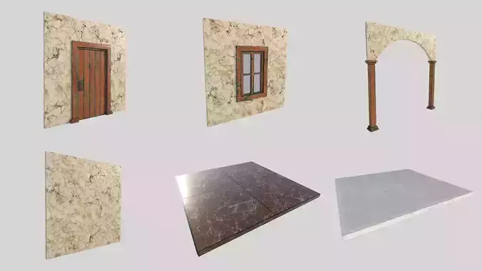 Modular 3D kit construction Historical interior Antique model pieces assembly