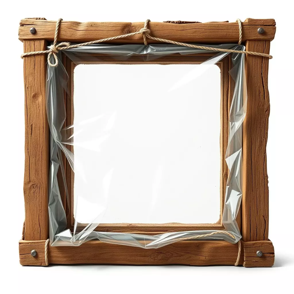 This detailed 3D model presents a rustic wooden frame, reminiscent of a weathered window or a temporary structure. The robust, textured wood exhibits natural grain and signs of age, providing an authentic, worn-out aesthetic. A transparent plastic sheet is meticulously draped across the opening, showing realistic wrinkles and creases, capturing the interplay of light and shadow on its surface. The entire assembly is secured with knotted ropes, adding to its makeshift charm, along with visible nails or fasteners that enhance its structural integrity. This versatile asset is perfect for game development, particularly for scenes requiring a post-apocalyptic, rural, or survival theme. It can also enrich architectural visualization projects depicting abandoned buildings, temporary shelters, or a workshop environment. Furthermore, its realistic detailing makes it suitable for immersive AR/VR experiences and various digital art compositions where a touch of worn authenticity is desired. The model features clean topology, is fully UV unwrapped, and comes with high-quality PBR textures to ensure stunning visual fidelity across various render engines. It is optimized for real-time applications while maintaining sufficient detail for high-quality static renders. Supported file formats typically include GLB, OBJ, STL, ABC, DAE, FBX, USD, and PLY, ensuring broad compatibility for your creative workflow.