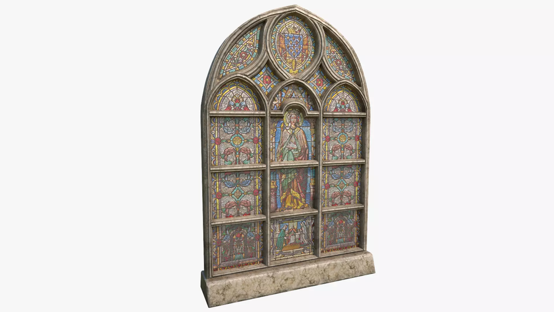 Game ready model,Highly realistic and detailed Stained Glass Window fully textured, sculpted and rendered with Physical based rendering (PBR) - Shown images have been rendered in Substance Painter (Iray).The model contains lods. Detailed information about the lots in the screenshots and also in the description below.