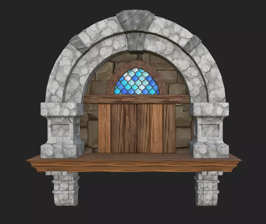 Stylized Medieval Window 3D asset – high-quality, game-ready model perfect for fantasy castles, RPG villages, and medieval houses. Features weathered wooden frame, textured glass, ornate metal fittings, and stylized details, 4K textures, fbx, obj, .blend