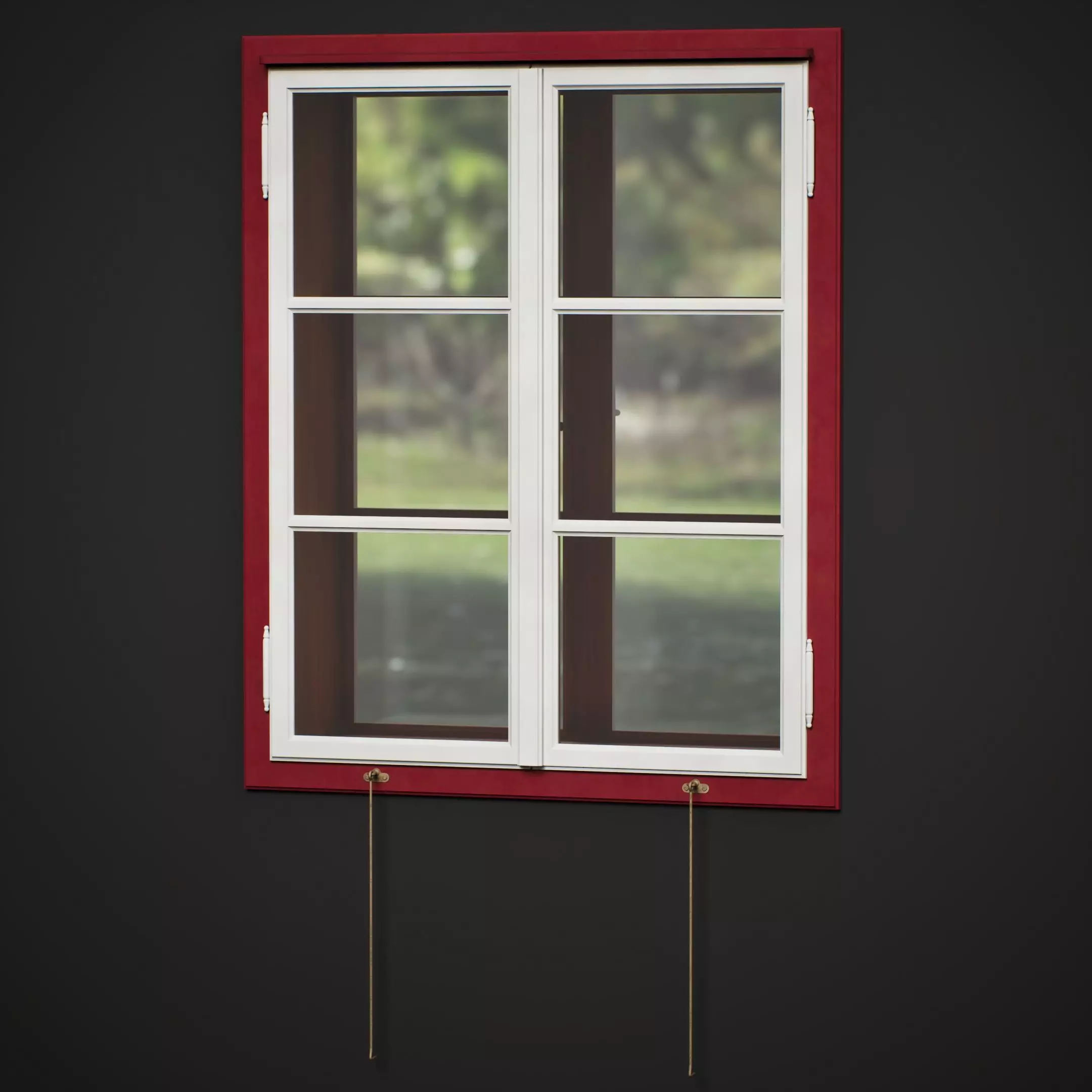 Wood Box Window - larch wood - outside painted - bronze handle hinges and closing mechanism - outer windows with single glazing, inner window with double glazing - 2 versions of albedo map