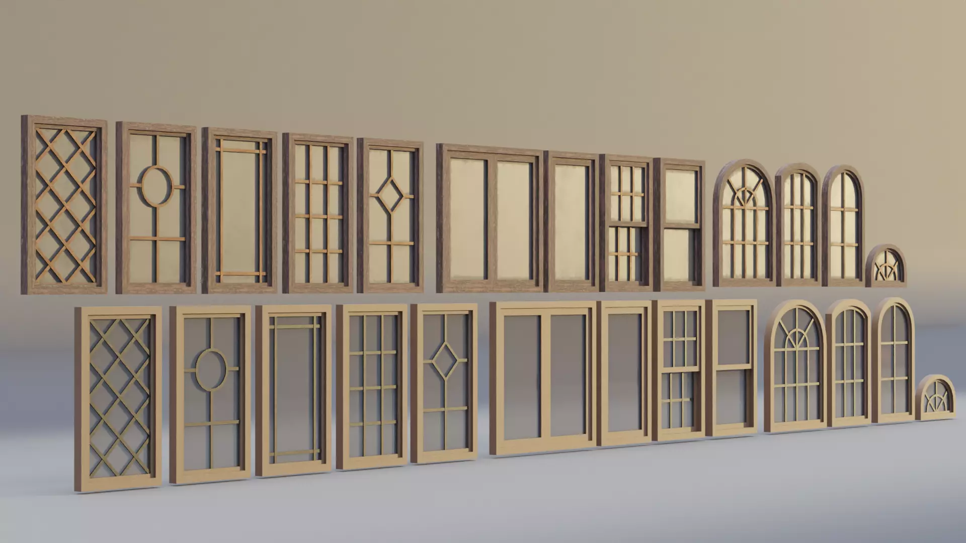 Pack of wooden windows with color variations