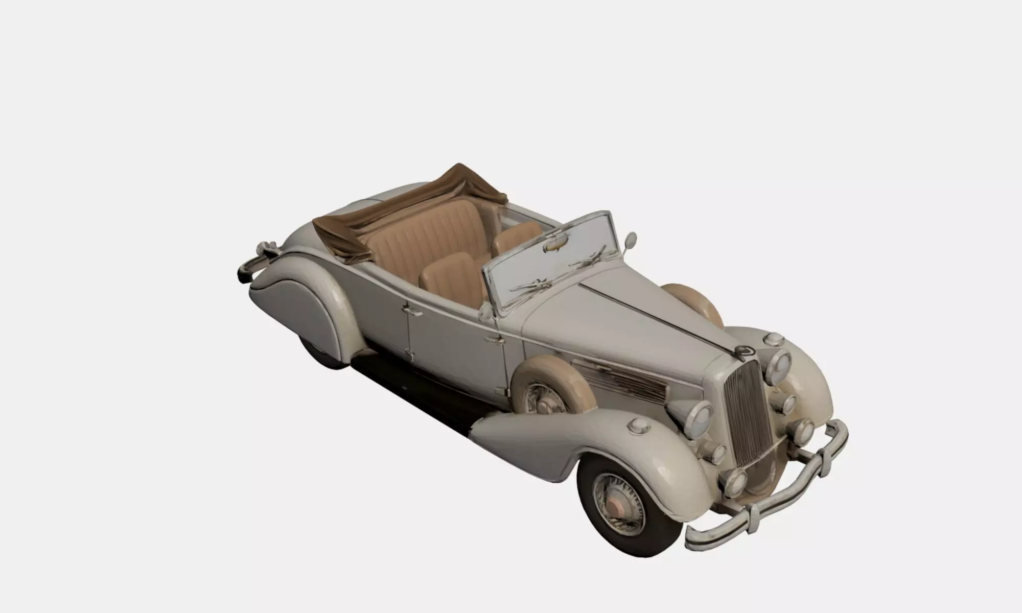 This 1930s Early Vintage Convertible Soft Top 3D model is a highly detailed and realistic asset created for professional 3D projects. The model accurately captures period-correct proportions, classic convertible body styling, soft fabric roof design, vintage fenders, headlights, and authentic exterior details typical of early 1930s convertibles. It is ideal for historical scenes, period films, classic city environments, luxury vintage collections, and educational visualizations.