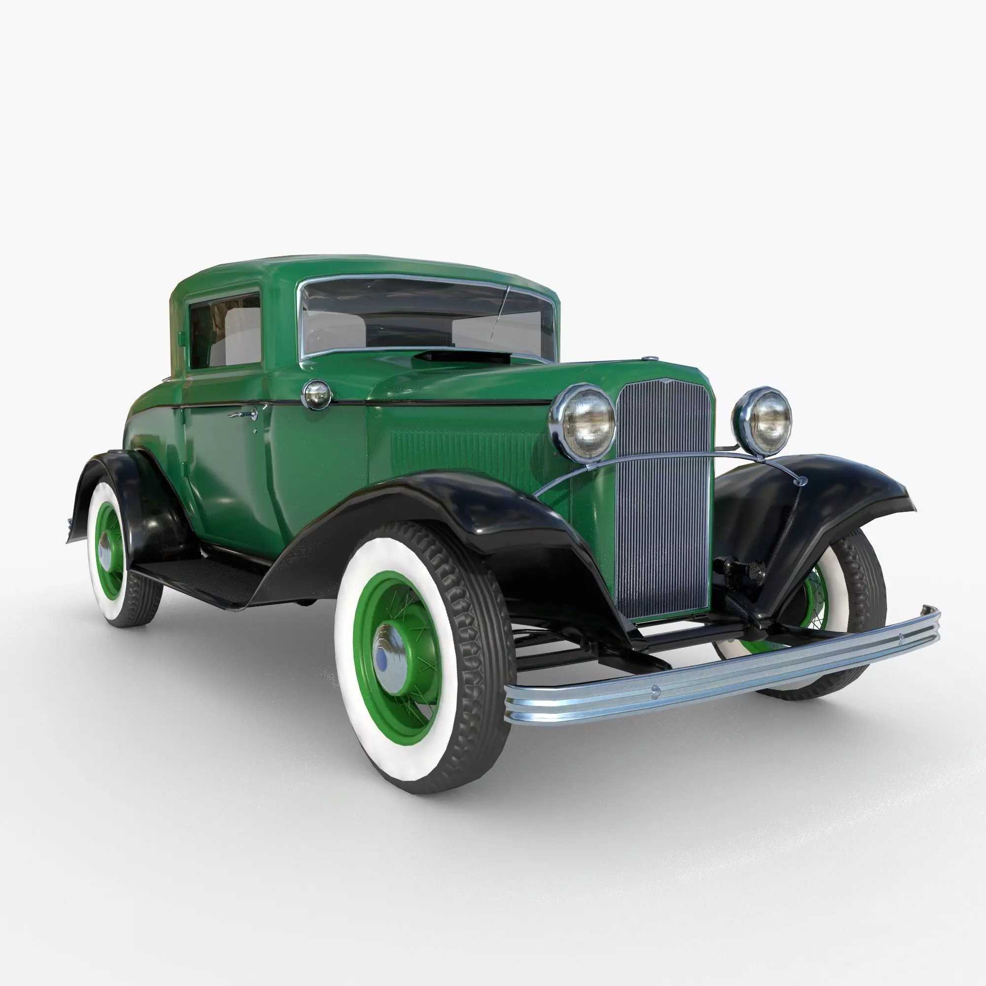 Low poly 3D model of the 1932 Ford Model 18 coupe.