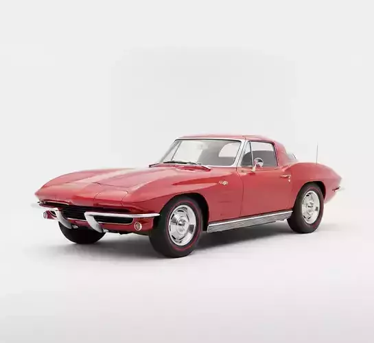 This high-fidelity 3D model meticulously recreates the iconic 1963 Chevrolet Corvette Sting Ray Coupe, a masterpiece of American automotive history. Known for its revolutionary Split Window design—a feature exclusive to the 1963 model year—this asset captures the aggressive aerodynamic silhouette and the distinct center wind-split that runs from the roof through the rear deck. The model showcases a vibrant red finish, emphasizing the compound-curved glass, hideaway headlights, and chrome front and rear bumpers. Intricate details such as the whitewall tires with red-stripe accents, polished hubcaps, and authentic side-vent styling make it an ideal choice for high-end architectural visualizations, historical car simulations, or as a premium collectible in digital automotive galleries.