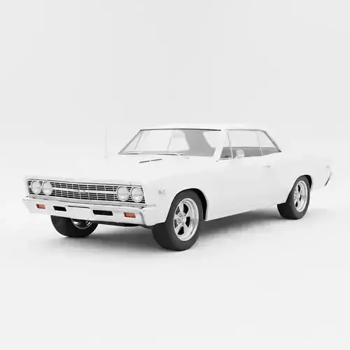 This is a high-fidelity 3D model of the legendary 1967 Chevrolet Chevelle SS, a pinnacle of the American muscle car era. Presented in a clean, studio-white finish, the model expertly captures the vehicle's iconic coke bottle styling, featuring the sculpted rear fenders and the aggressive front end with dual headlights and a classic egg-crate grille. Key performance details are meticulously rendered, including the hood vents, SS 396 badging on the front fenders, and period-correct five-spoke chrome mag wheels wrapped in wide performance tires. The clean topology and high-quality shaders make this asset perfect for automotive historical visualizations, cinematic period pieces, or high-end racing game environments where authenticity and detail are paramount.
