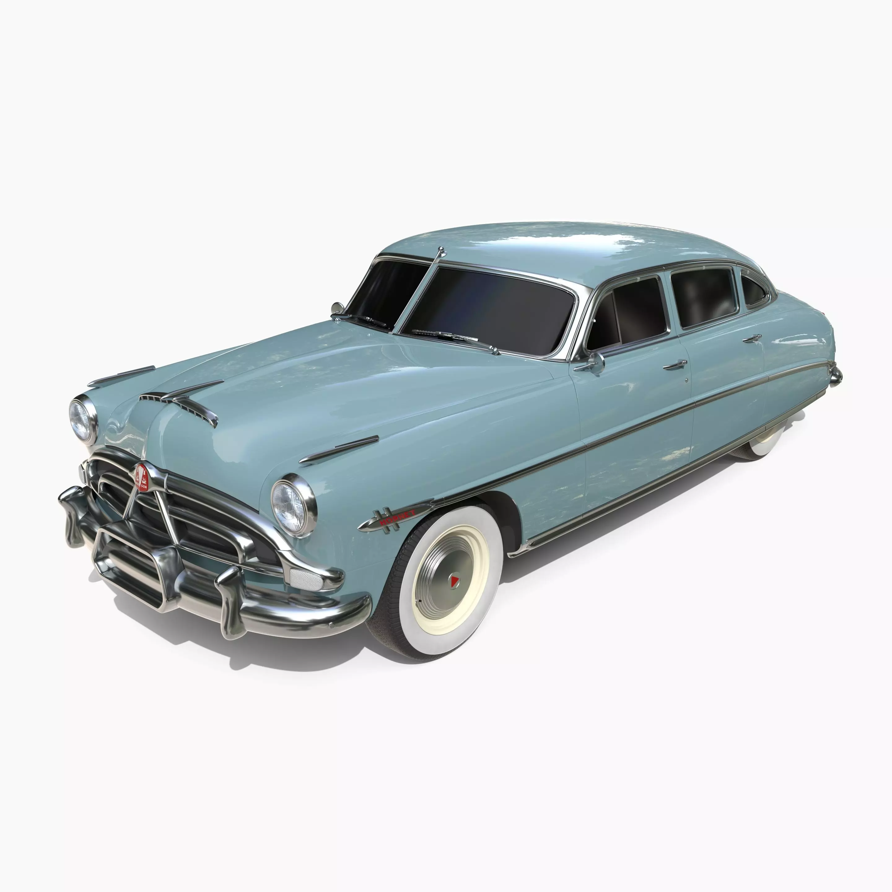 4 Door Hudson Hornet detailed 3d model, rendered with Cycles in Blender, using PBR textures, as per seen on attached images. The 3d model is scaled to original size in Blender.