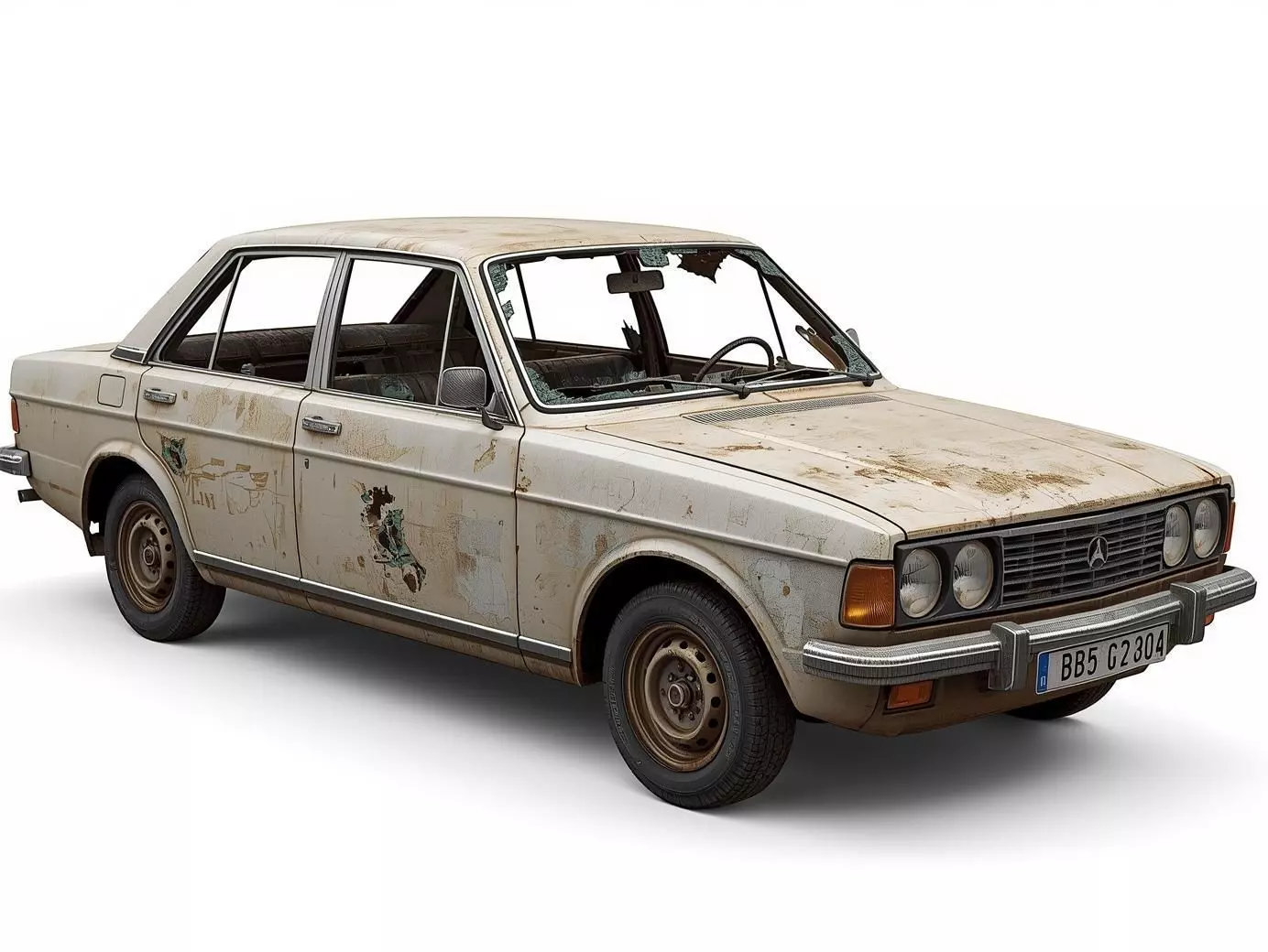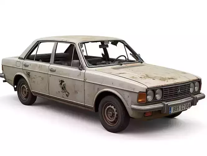 TagsCar Sedan Civilian Abandoned MiddleEastern WarDamage BulletHoles Dusty Rusted Worn PBR Prop GameAsset Detailed 3DModel Vehicle Ruins