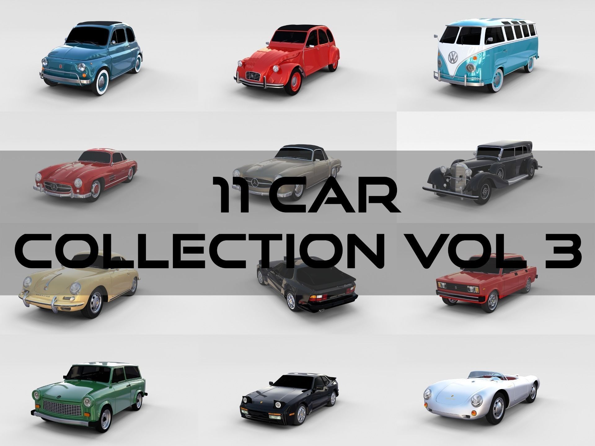 11 Car Model Collection consisting of the following cars and the subsequent file formats available for each model: