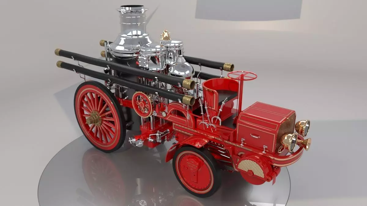 The first fire trucks produced consisted of motorized axles mounted on the fire brigade's existing motorless steam pumps. These fore-carriages used a T-head 4 cylinder engine. The first model had a 90 hp four-cylinder engine mounted longitudinally above the axle. The first buyer was the New York City Fire Department.