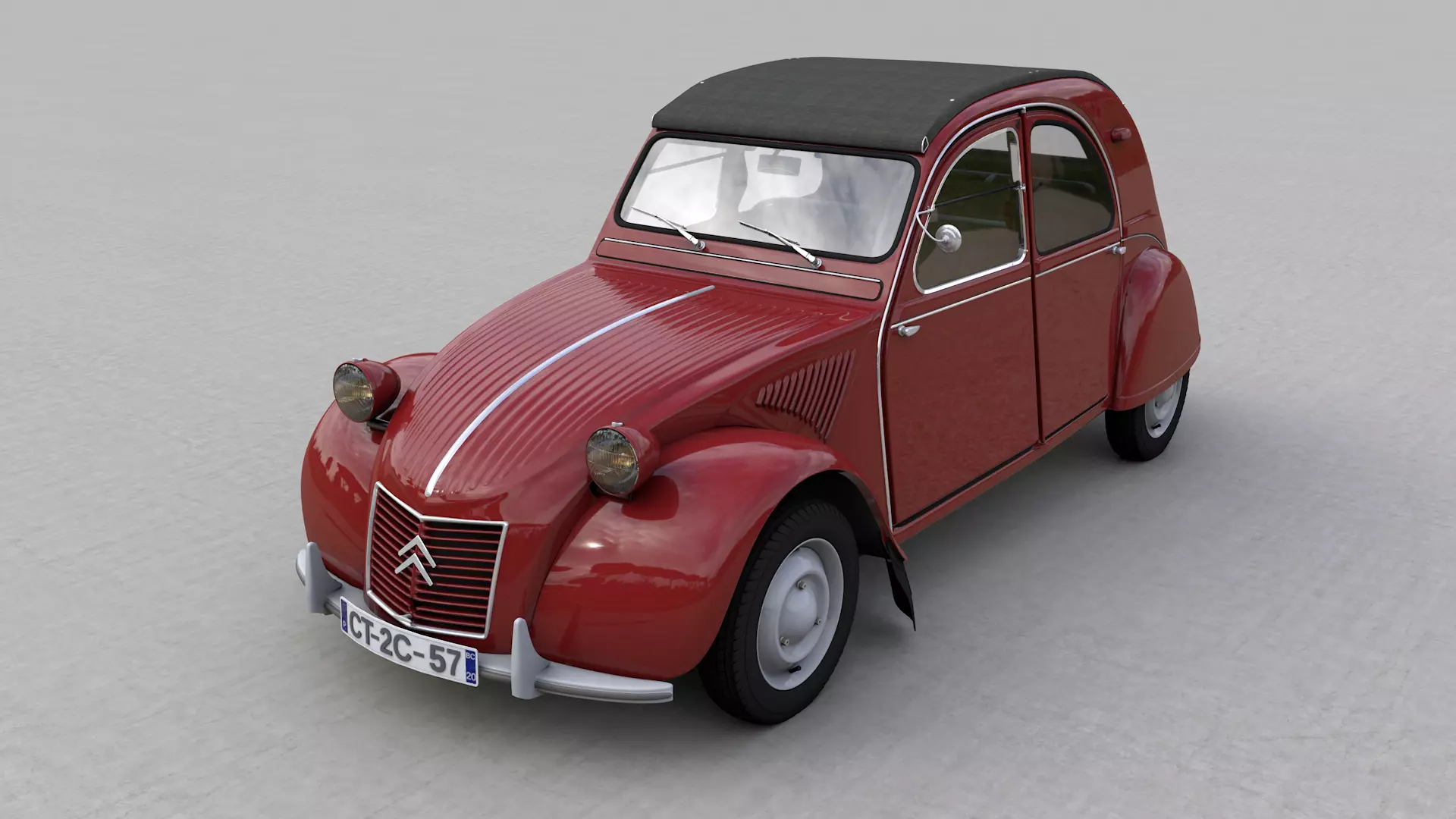 High detailed 3D model CITROEN 2CV AZ 1957, from inside and outside.
