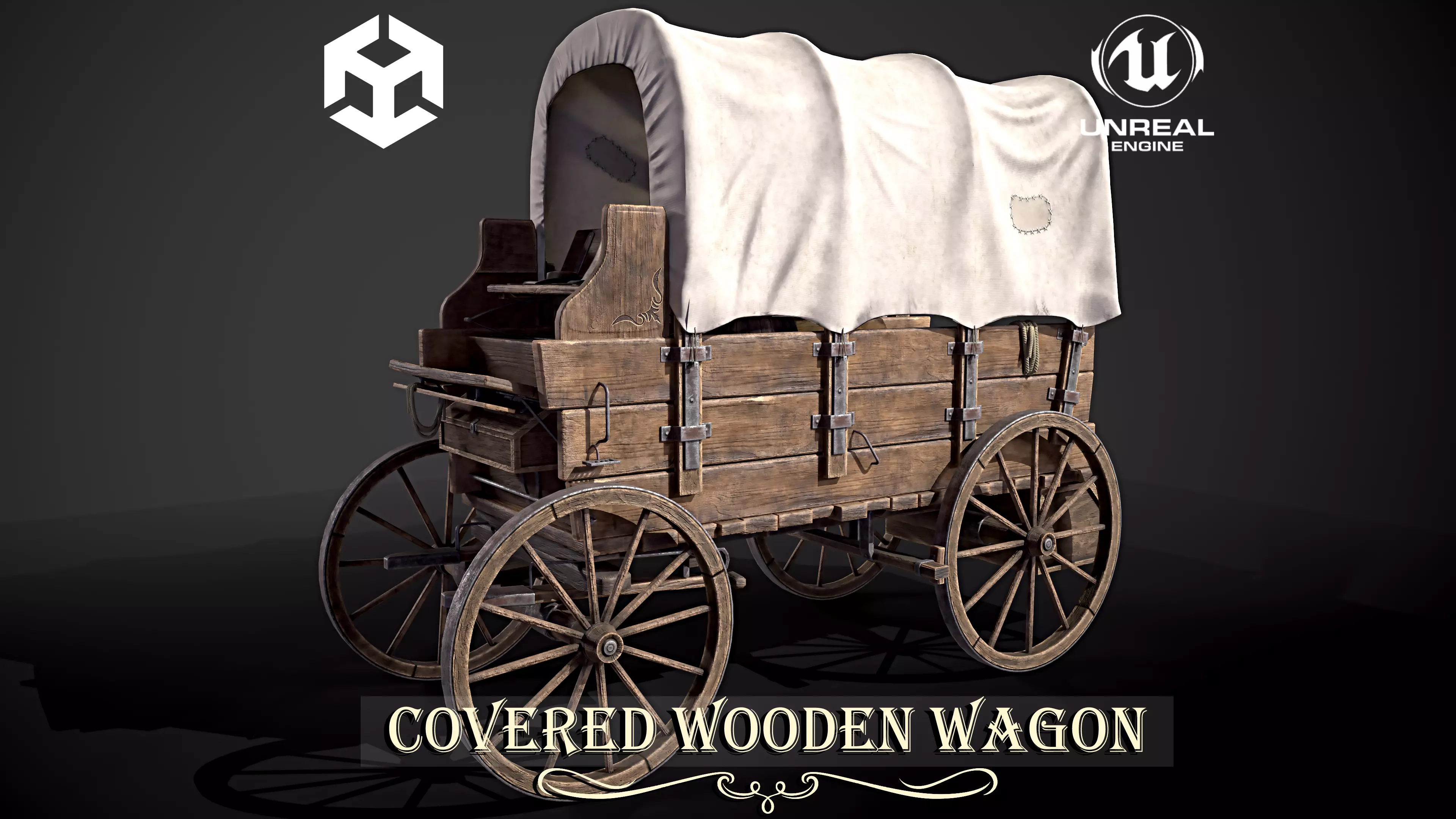 Covered wooden wagon Game Ready 4K Low-poly 3D model