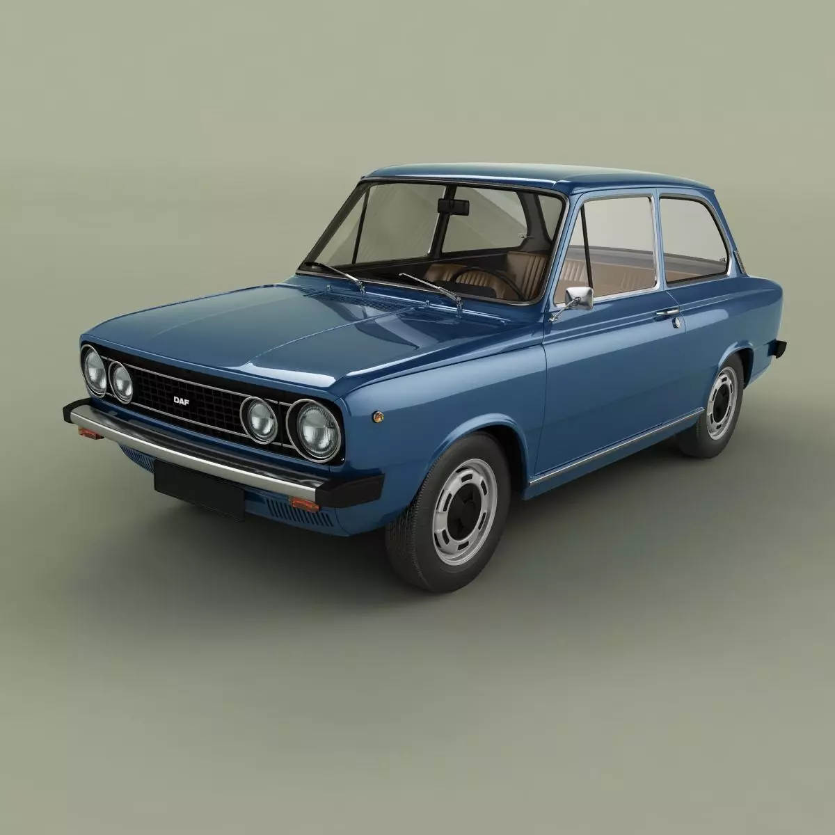 High detailed, correctly scaled model of 19672 DAF 66 Saloon. Originally created with 3ds Max 8. Rendered with V-Ray, files with standard materials are included. Unit system is set to metric units. Model is built to real-world scale. Geometry is Editable Poly (quads/tris only). TurboSmooth is use separately to objects (95 of 142 named objects) with iterations 2 (1324629 polys, 687146 vert.) Each file was checked before upload. Materials and textures are included (7 textures - jpg 1024X1024).