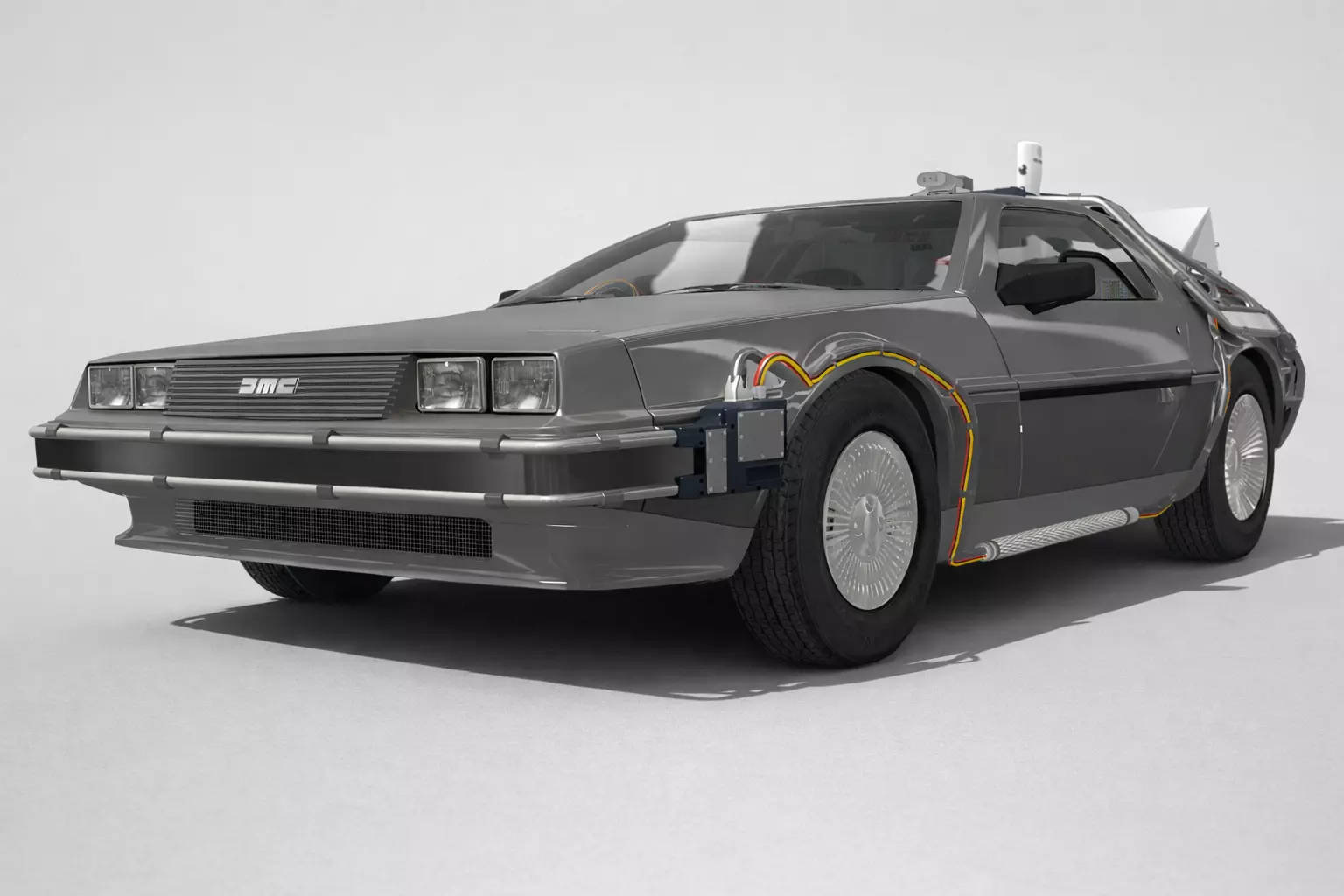 Highly detailed DeLorean Time Machine 3D model featuring a fully triangulated mesh optimized for real-time rendering, simulations, and game engines.