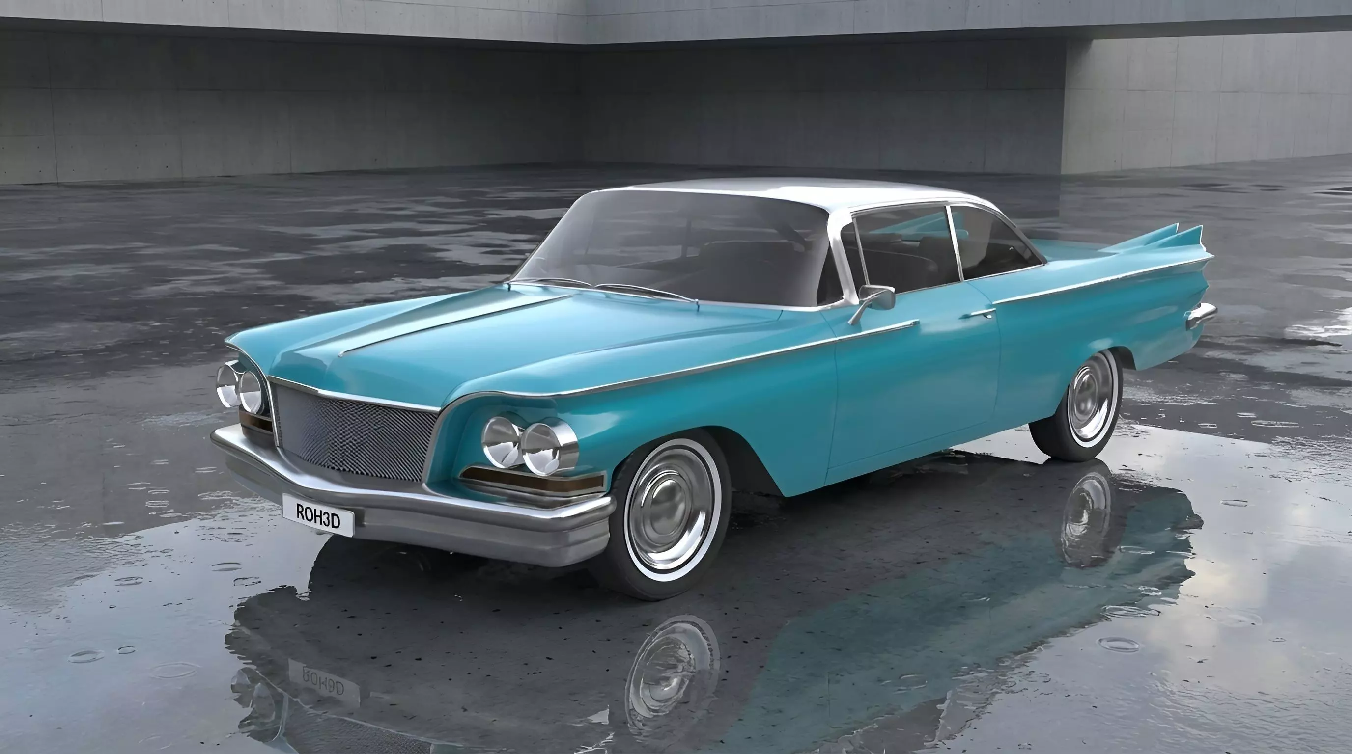 This generic mid-century coupe is inspired by the bold and elegant automotive design language of the late 1950s. Featuring a long streamlined body, distinctive tail fins, smooth chrome details, and classic proportions, this model captures the spirit of classic American-style coupes without referencing any real-world brand.