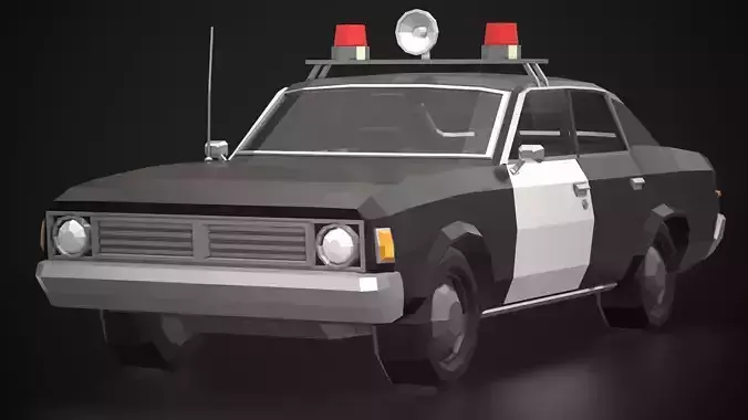 Stylized low-poly retro police car inspired by the design of cars from the 70s, with real-world proportions, and fully modeled interiors.