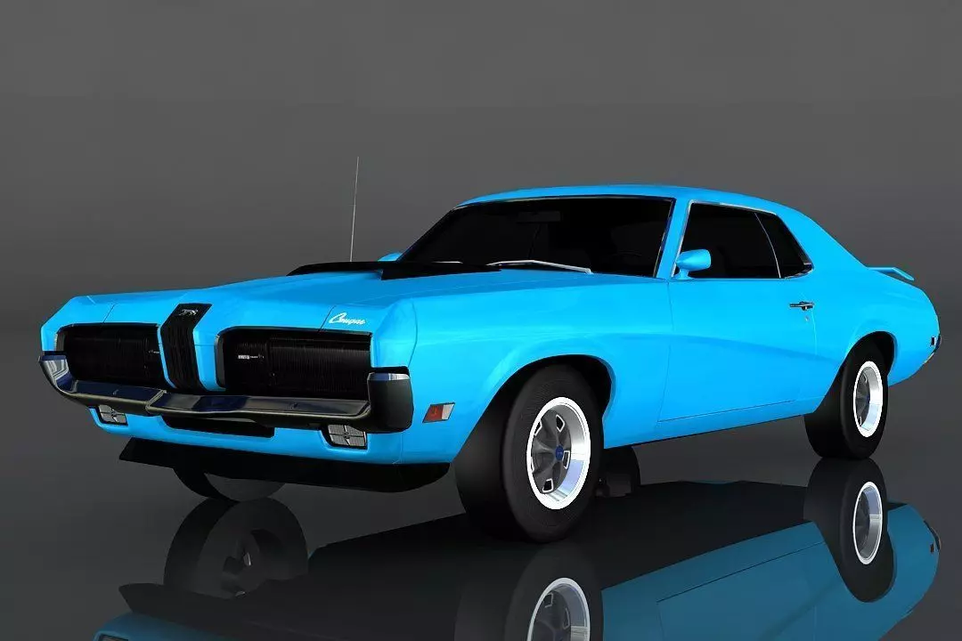 Mercury Cougar 1970 low-poly 3d model ready for virtual reality (vr), augmented reality (ar), games and other real-time apps.