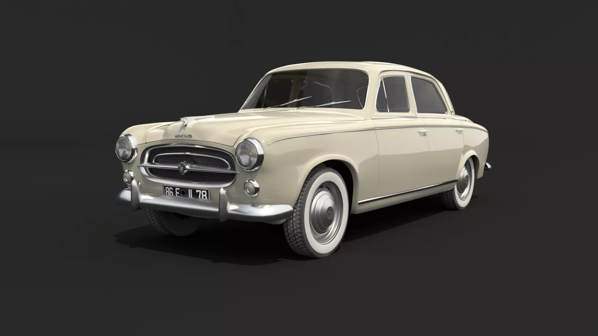 This is the 3d model of a Peugeot 403 Berline Grand Luxe 8ch (1955-1966). This is the fifties/sixties classy and luxury french sedan by the French car manufacterer Peugeot.