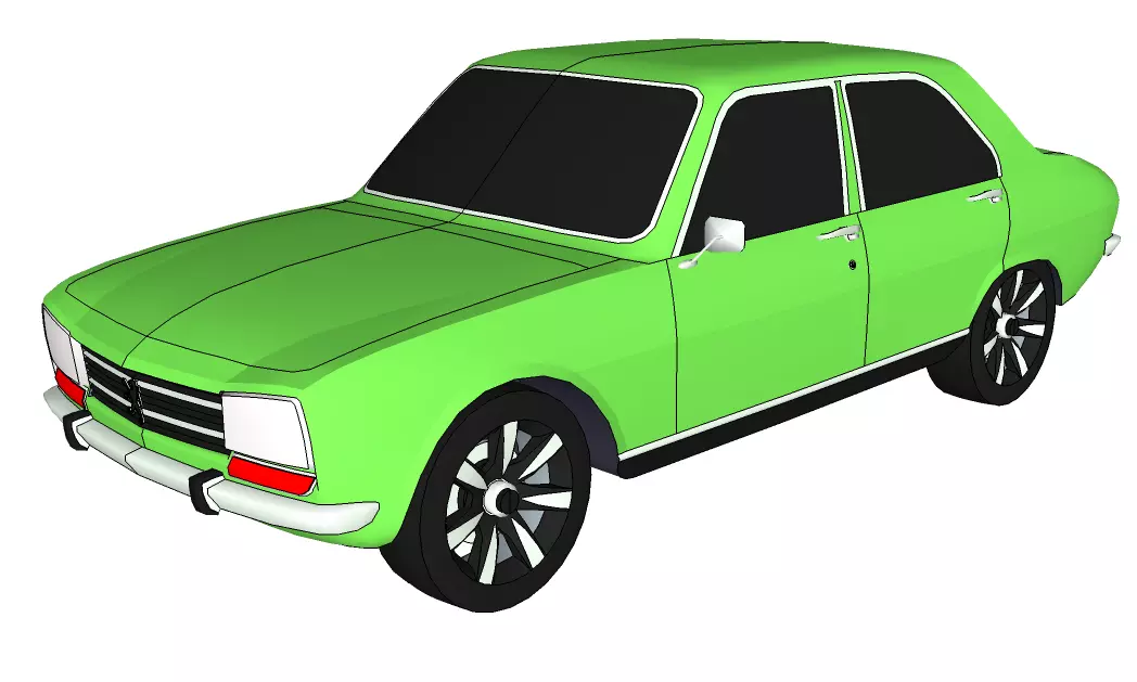 The model has material settings that define how surfaces look (color, shine, transparency, etc.).