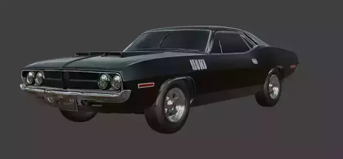 CGI 3D model of a classic Plymouth Barracuda, meticulously crafted for digital use. This model features detailed textures, accurate proportions, and a sleek black finish, perfect for animations, video games, or 3D rendering projects. Ideal for car enthusiasts, developers, and designers looking to add a vintage touch to their work. Files are compatible with major 3D software platforms.