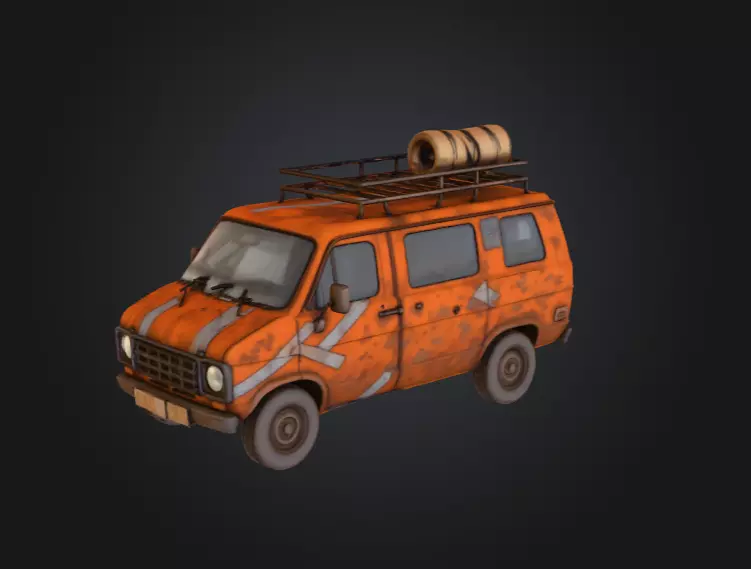 Designed with strong visual storytelling in mind, this model features a reinforced roof rack equipped for scavenging missions, complete with a weathered fuel barrel and sturdy framework. The exaggerated color palette and stylized textures balance realism with visual appeal, making it perfect for games, cinematic renders, or stylized animation projects. Despite its rough condition, the van maintains a sense of personality — it’s not just a vehicle, but a character in itself, hinting at countless journeys and survival stories untold.