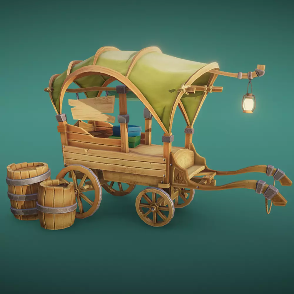 Wooden cart lowpoly model. The model has a fully textured, prepared from your lowpoly projects, and was originally modeled in Blender 2.82 and rendered with Marmoset. Hope you like it!