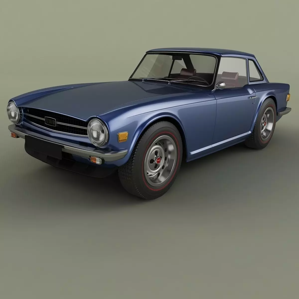 High detailed, correctly scaled model of 1975 Triumph TR6. Originally created with 3ds Max 8. Rendered with V-Ray, files with standard materials are included. Unit system is set to metric units. Model is built to real-world scale. Geometry is Editable Poly (quads/tris only). TurboSmooth is use separately to objects (89 of 152 named objects) with iterations 2 (942780 polys, 501367 vert.) Each file was checked before upload. Materials and textures are included (6 textures - jpg 1024X1024).