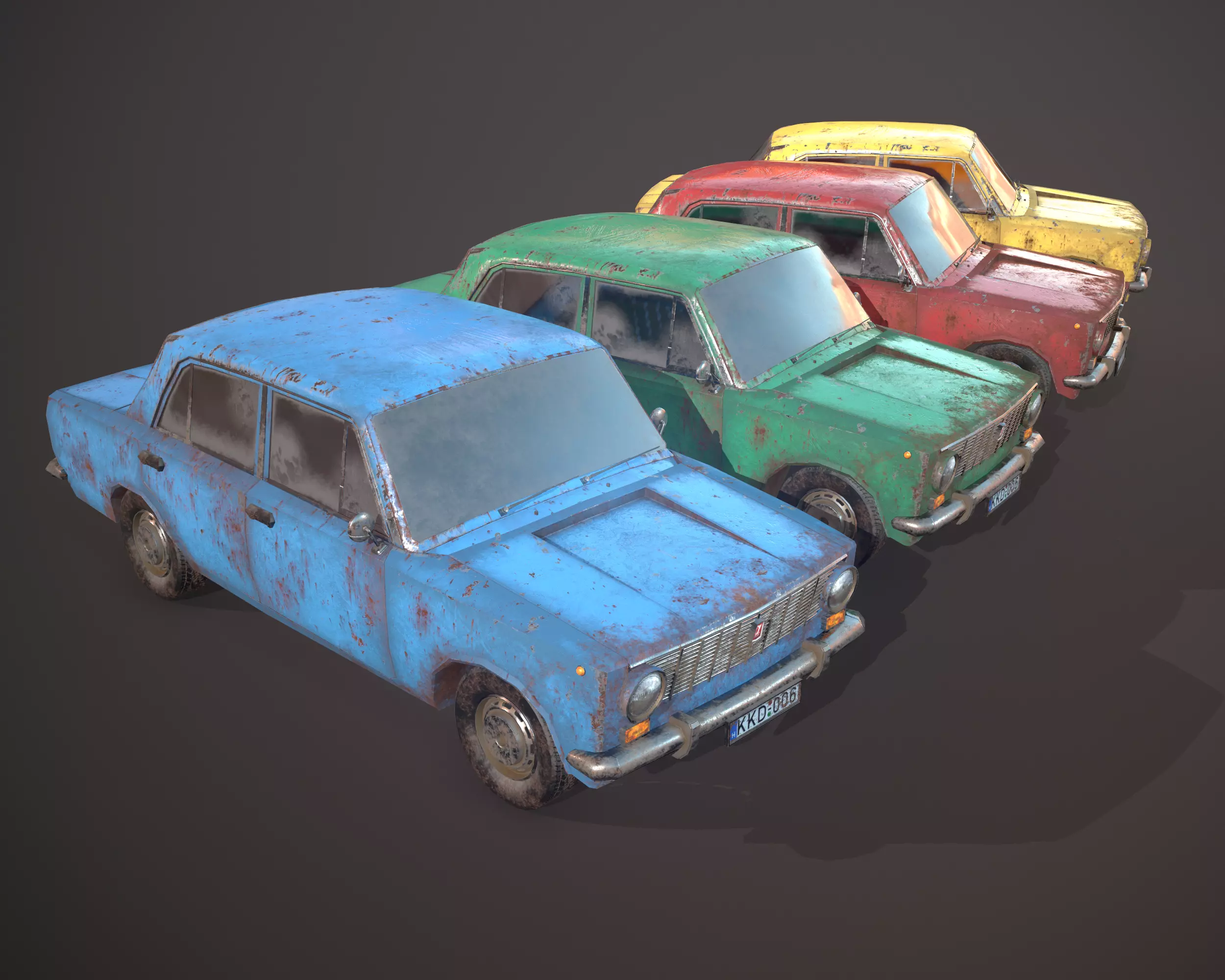 This is a lowpoly, game ready, triangulated mesh with 4 different color variant PBR textureses.