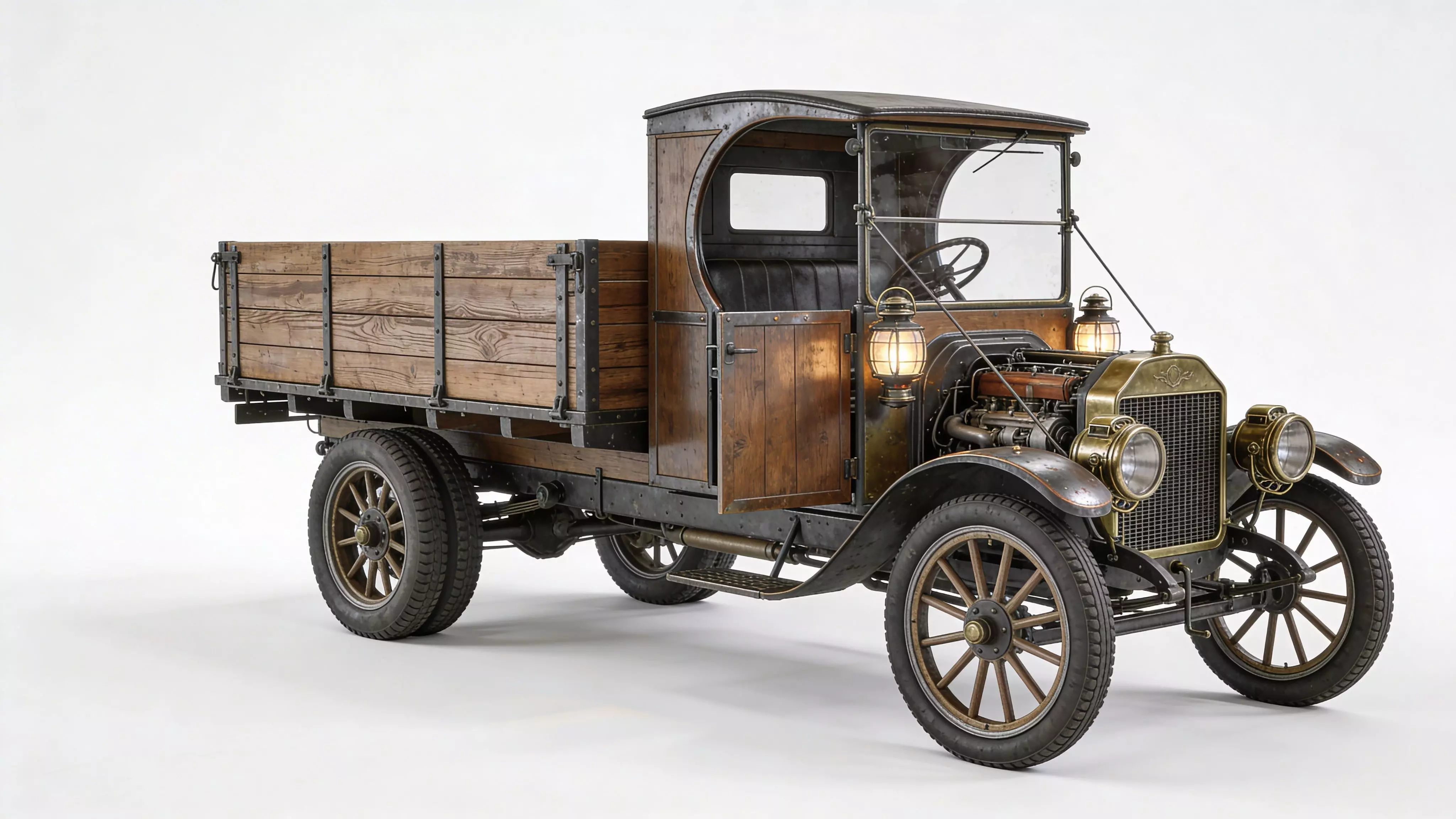 TagsVintageTruck, Industrial, 3DModel, SteamEra, Flatbed, AntiqueVehicle, GameAsset, Realistic, PBR, Weathered, WoodenSpokeWheels, HistoricalProp, Steampunk, UtilityVehicle, ExposedEngine, HeavyDuty, RuralScenery, EnvironmentProp, DistressedMetal, RetroTransport