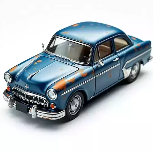 This meticulously crafted 3D model depicts a classic two-door sedan, rendered with a distinctive weathered aesthetic. The vehicle features a distressed blue paint finish complemented by realistic, intricate rust patterns, creating a compelling sense of age and abandonment. It is an ideal asset for a variety of digital projects, including post-apocalyptic game environments, historical or urban decay scenes in architectural visualization, cinematic renders, and immersive virtual reality (VR) and augmented reality (AR) experiences. The model is optimized for real-time applications with an efficient polygon count, ensuring smooth performance in game engines while maintaining a high level of visual fidelity. It also excels in static renderings, providing photorealistic detail for still images. Key features include clean, well-structured topology, professional UV unwrapping, and a comprehensive set of PBR (Physically Based Rendering) textures, encompassing Albedo/Base Color, Metallic, Roughness, Normal, and Ambient Occlusion maps. These textures accurately capture the material properties and aged appearance. The interior of the car is also modeled, adding to its versatility and realism. This asset is prepared for seamless integration into your preferred 3D software and engines, ready to enhance your scenes with its unique character. Supported file formats include GLB, FBX, OBJ, USD, DAE, and ABC, providing broad compatibility for various workflows.