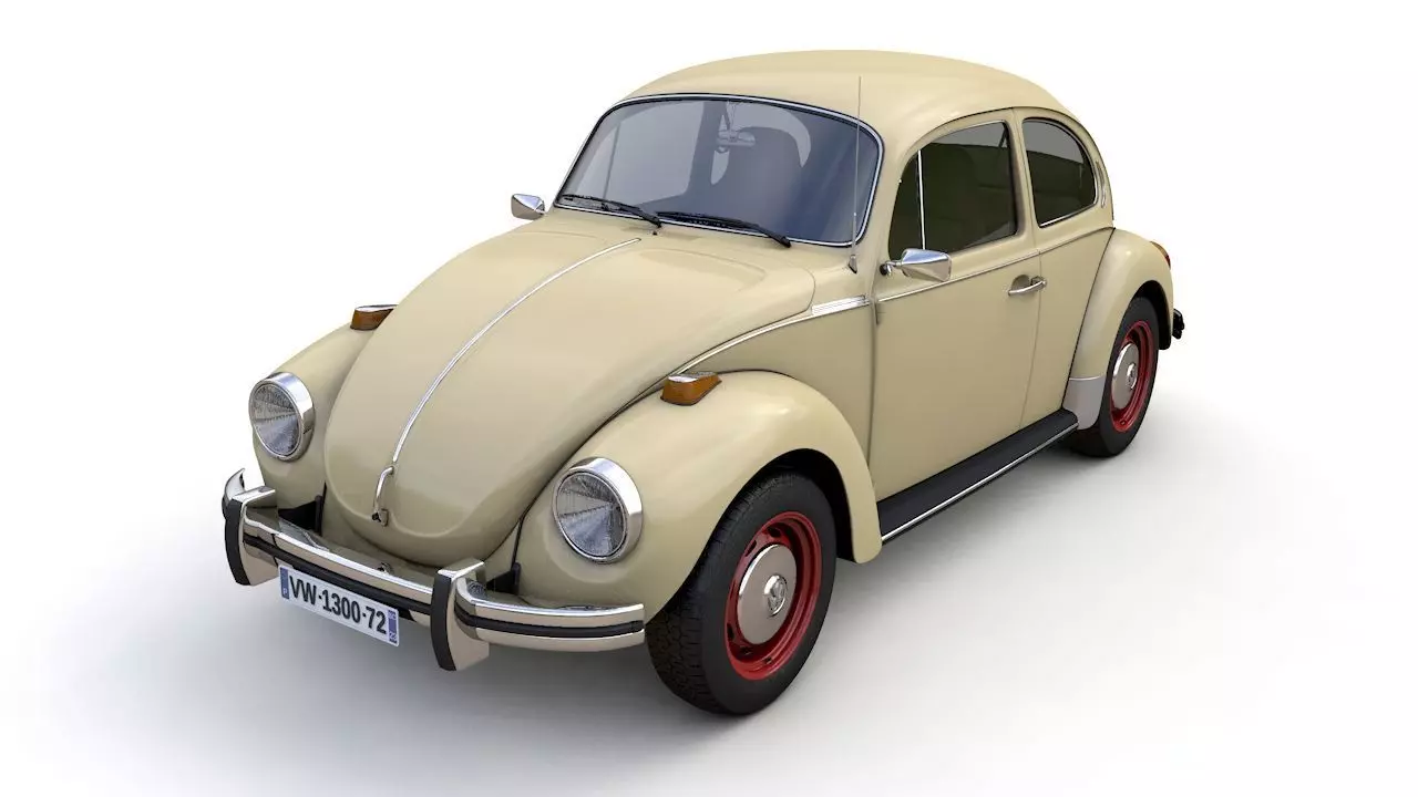 High detailed 3D model Volkswagen 1300 Super Beetle 1972, from inside and outside and engine.