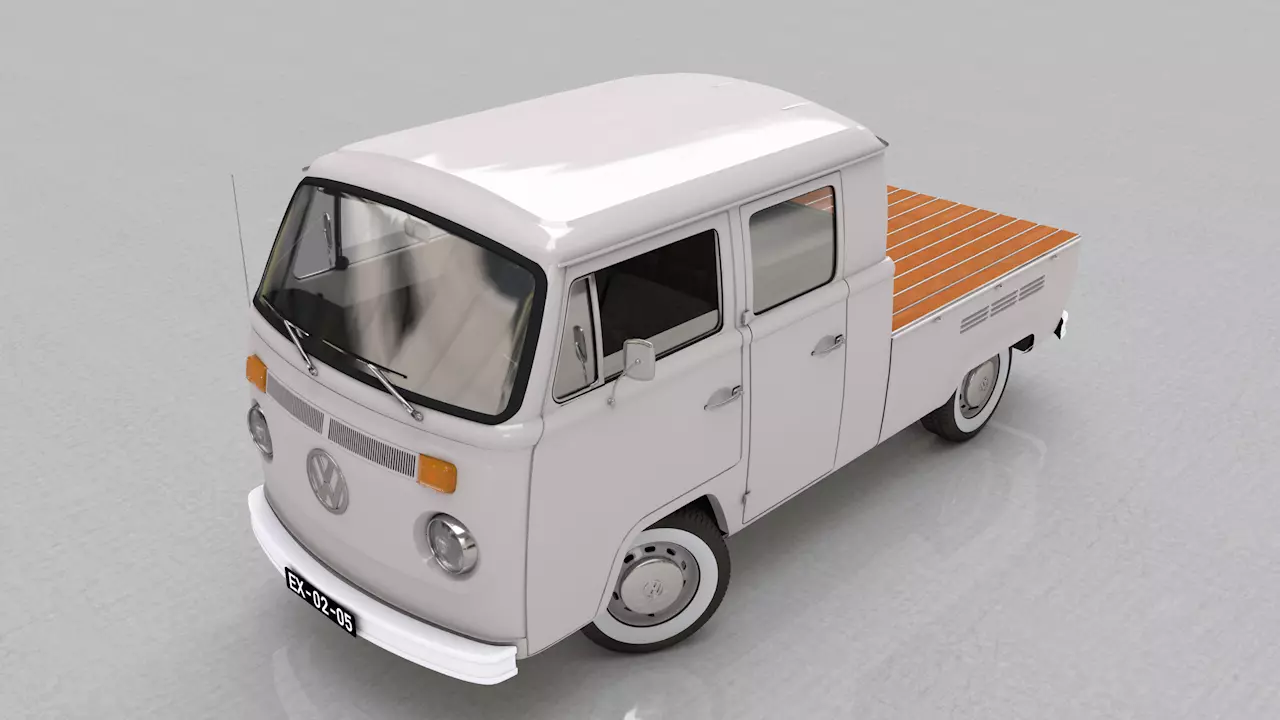 High detailed 3D model VOLKSWAGEN T2 PICKUP DOUBLE CAB - 1974.
