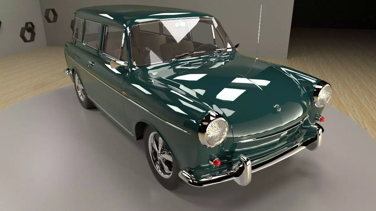 This model was designed in Sketchup and converted to 3ds and obj... using the buit-in sketchup converter. Rendering program is Maxwell free plug-in. Materials added to a single folder. Textures in model from Sketchup library Diferent parts of the model (steering wheel, lights, tires and wheels, wing mirrors, seats, etc.) are compiled in components and grouped in one single model.