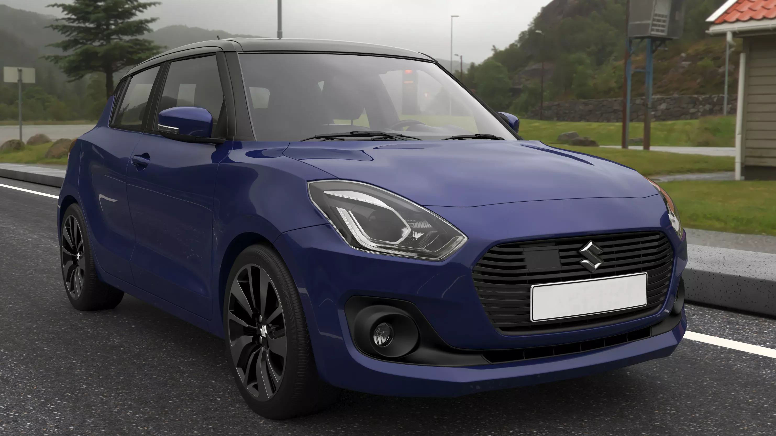 High detailed 3d car model of Suzuki Swift subcompact car, blue body 5-door hatchback. Available 3d file format: .max (3ds max) V-ray render. Texture format and V-ray proxy ready 3ds max files available with proxy files.