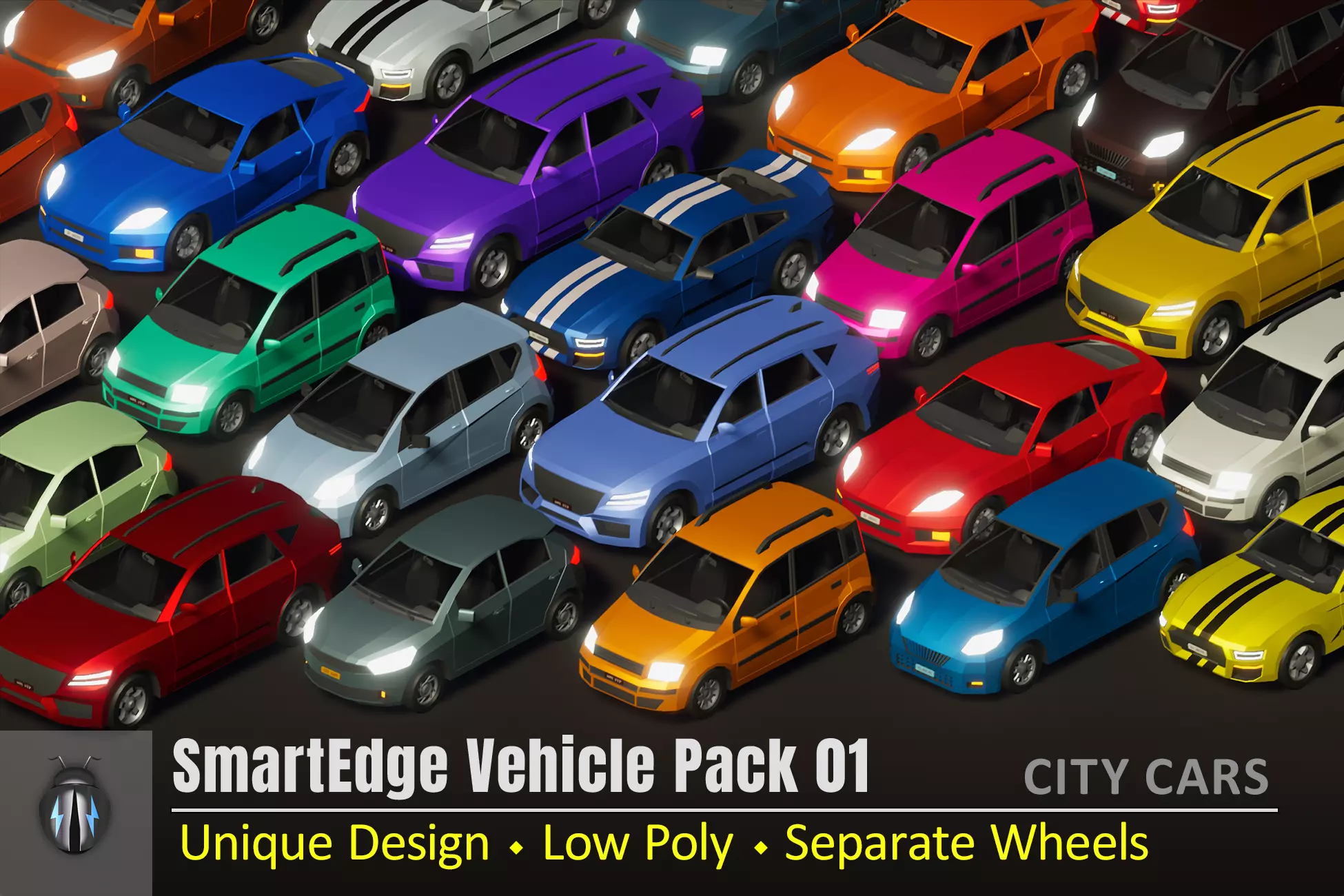 It is a pack of 30 SmartEdge low poly city car models (6 unique cars each with 5 unique color variations). Each car comes in two types : simple interior and without interior. This package does not include animations. However, car wheels, doors and steering wheels are ready to be animated. Car wheels of each car are separated for animation. For cars with interior, along with the car wheels, doors, and steering wheels are also separated for animation. These city cars are perfect for any city / urban environment or racing game projects.