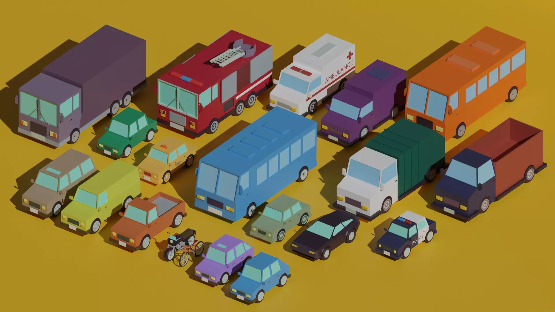 These 3D vehicle models stand out with their minimalist yet recognizable forms, making them easy to integrate into any game project or animation scene.