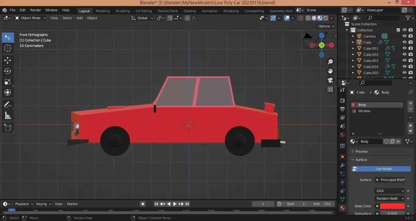 The model has material settings that define how surfaces look (color, shine, transparency, etc.).