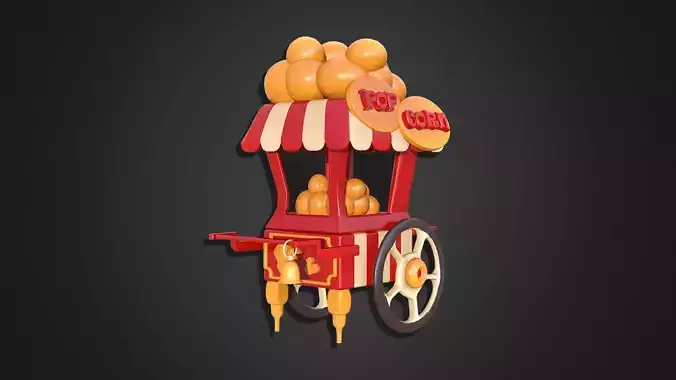 Asset - Cartoons - Food Popcorn Cart 3D model