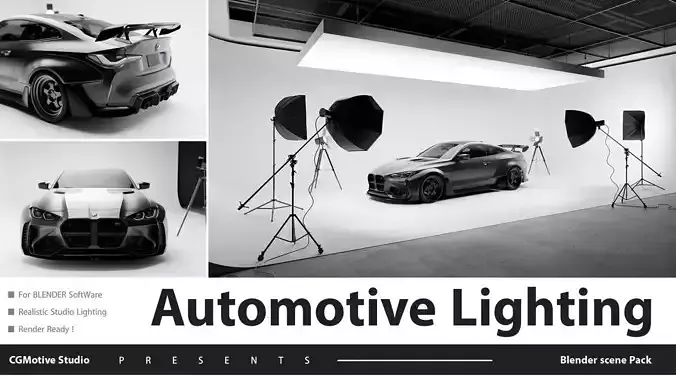 Bring your automotive renders to life with CG MOTIV Studio’s Automotive Lighting Scene Pack — a fully optimized and realistic studio lighting setup made for Blender.