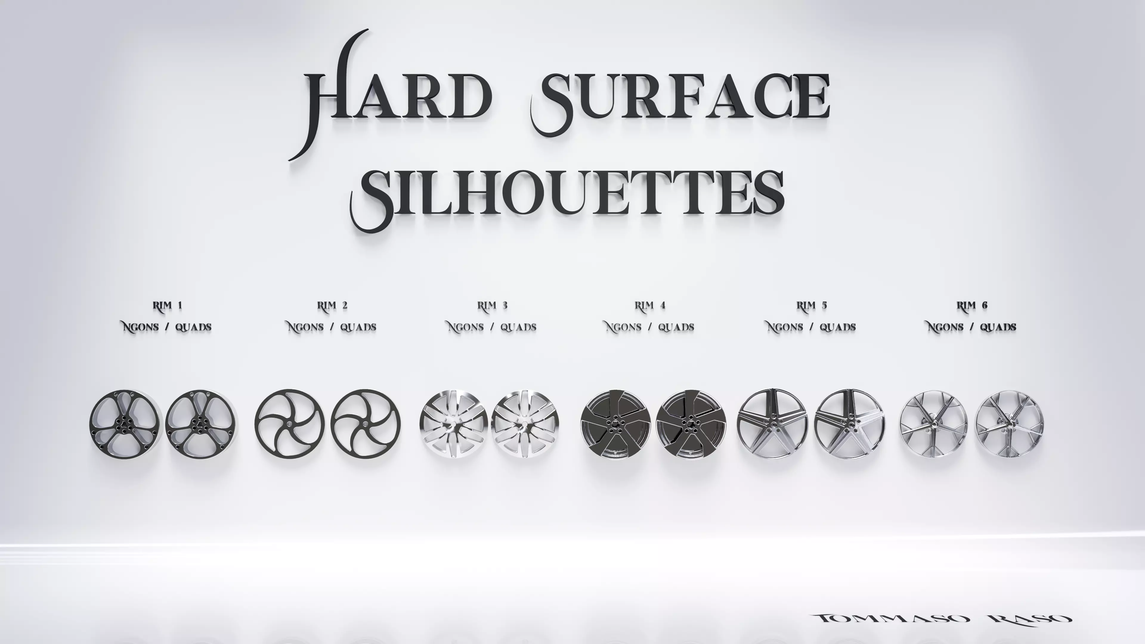 A collection of 6 car rims profile. Two reolutions: Low poly (ngons) and Mid poly (Quads).Blender native file; obj; fbx; glt formats available.