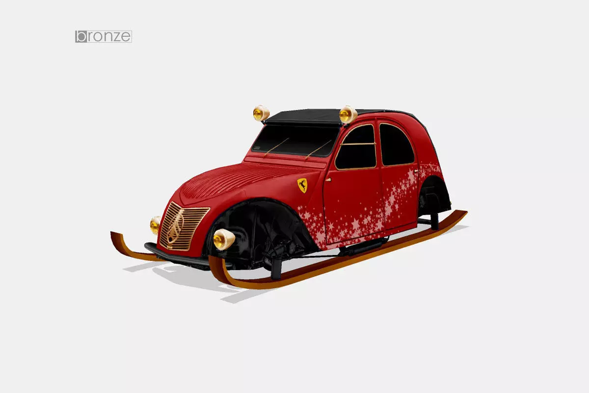 3d model of a Citroen 2CV A modified as a Santa's sleigh