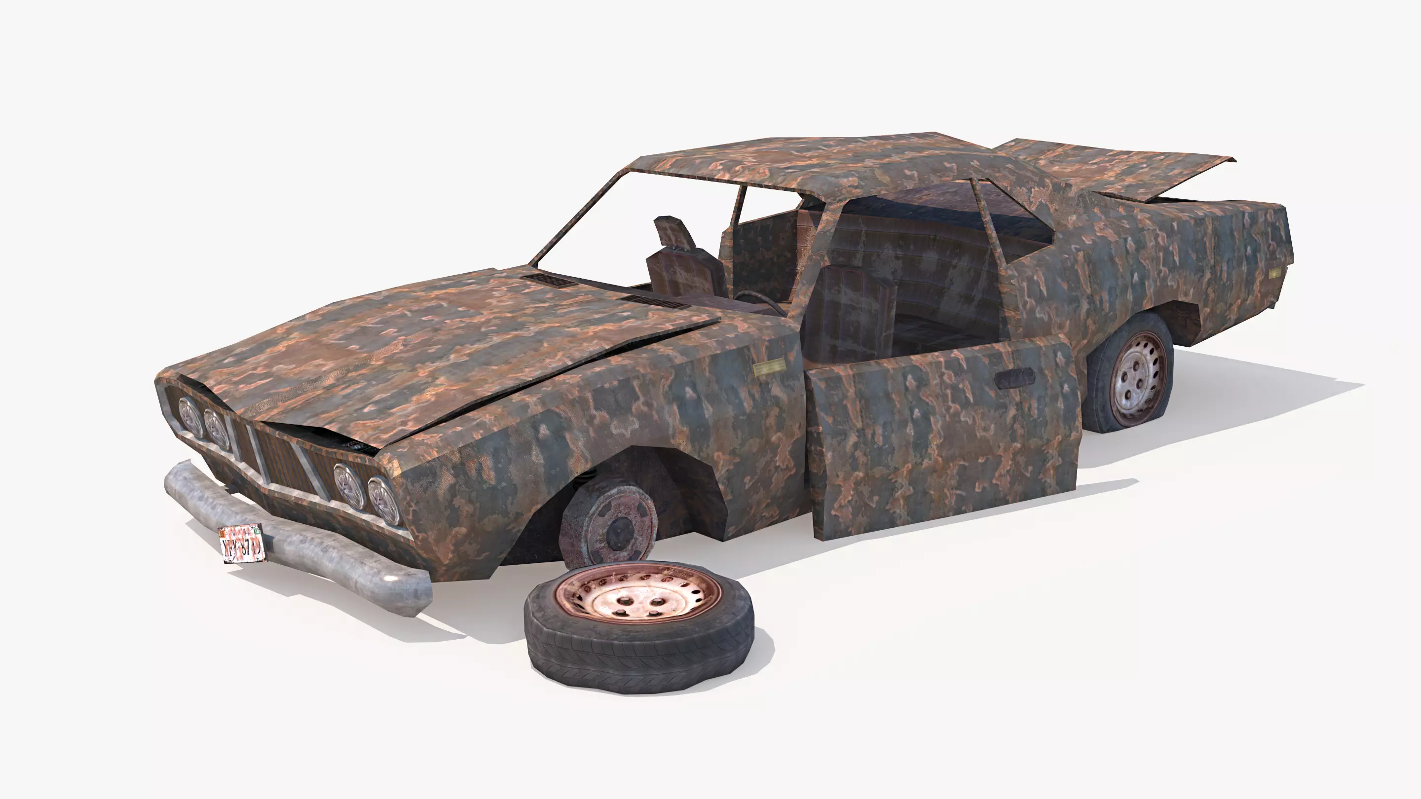 Realistic, high quality and fully detailed 3D model of Destroyed Car. Rusty Car is ready to use in games and other real time applications. Old Car is built with great attention to details and realistic proportions with correct geometry. Model is detailed perfectly and optimized for all platforms and ready to use in games and other projects. The mesh topology is clean, efficient and has only tree and quad polygons. Destroyed Car is fully textured with all materials applied. All colors can be easily modified. No special plugin needed to open scene. Everything shown in the screenshots.