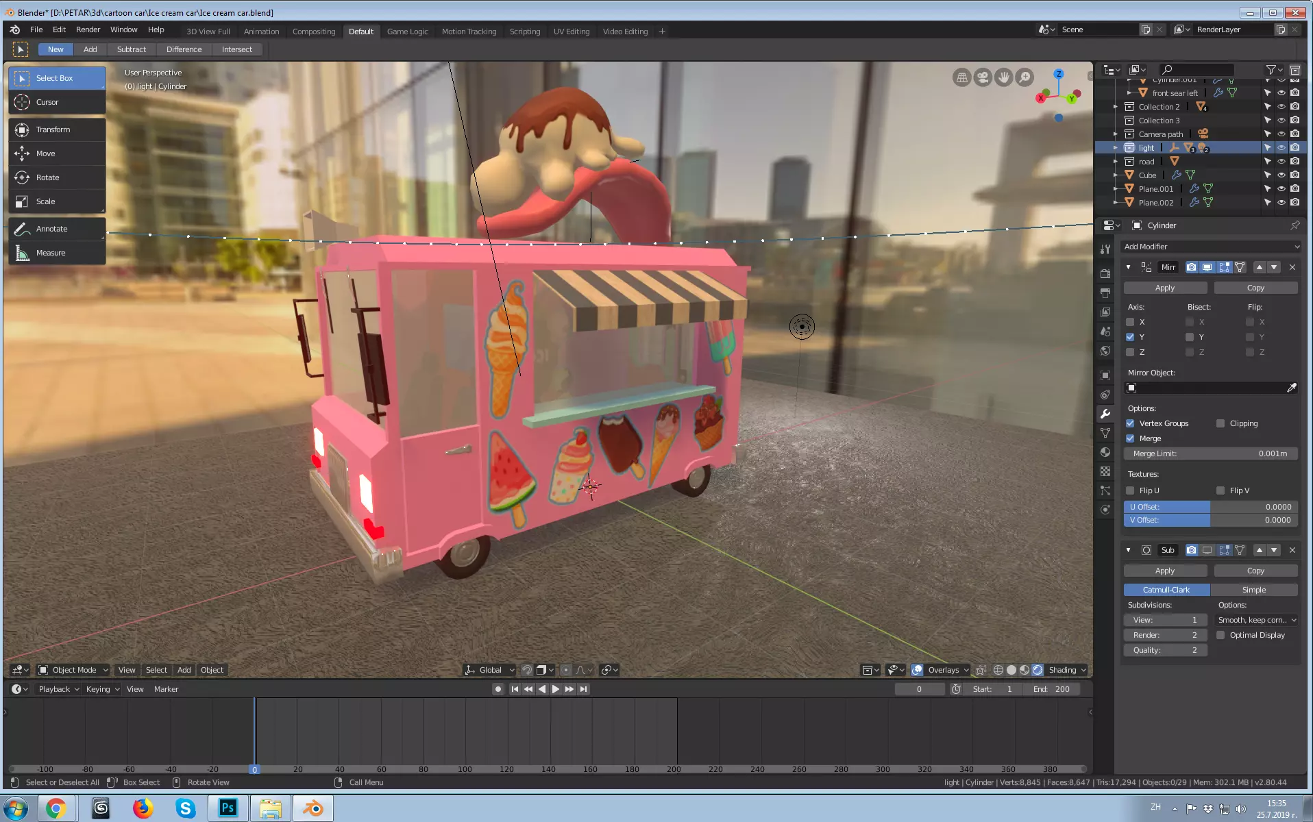 The model has material settings that define how surfaces look (color, shine, transparency, etc.).